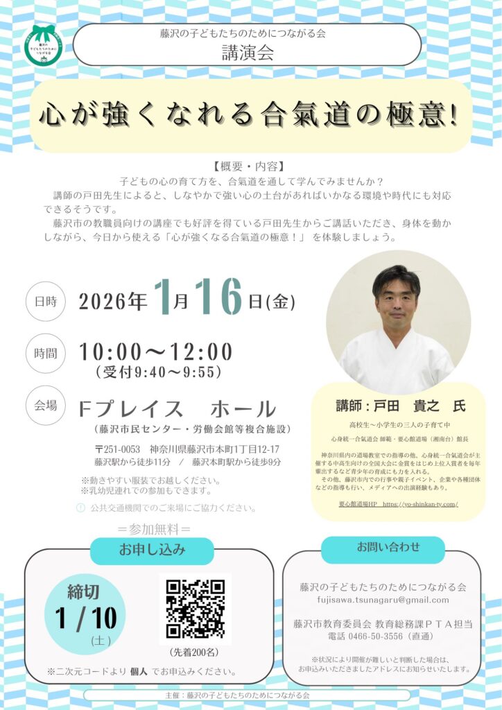 2025年度 藤沢の子どもたちのためにつながる会 講演会 『心が強くなれる合氣道の極意!』 講師 : 戸田 貴之 氏 ...